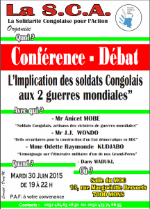 / | Leave a CommentConférence 30 juin 2015 : L’Implication des soldats Congolais dans les deux guerres Mons (Belgique), salle du MOC, le 30 juin 2015 à partir de 19h Intervenants : Odette Kudjabo – Anicet Mobe – Jean-Jacques Wondo