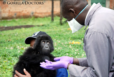 Ihirwe,orphan gorilla captured in Kivu learning to trust her new doctors at the Kinigi facility in Rwanda