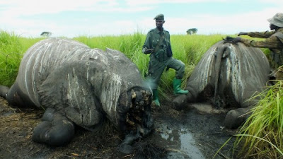 Elephants massacred from a helicopter attack in Garamba National Park, DRC.