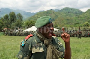 Général François Olenga - Chef de la maison militaire du Président, alors ched de l'armée de terre, haranguant les troupes lors de la guerre contre le M23